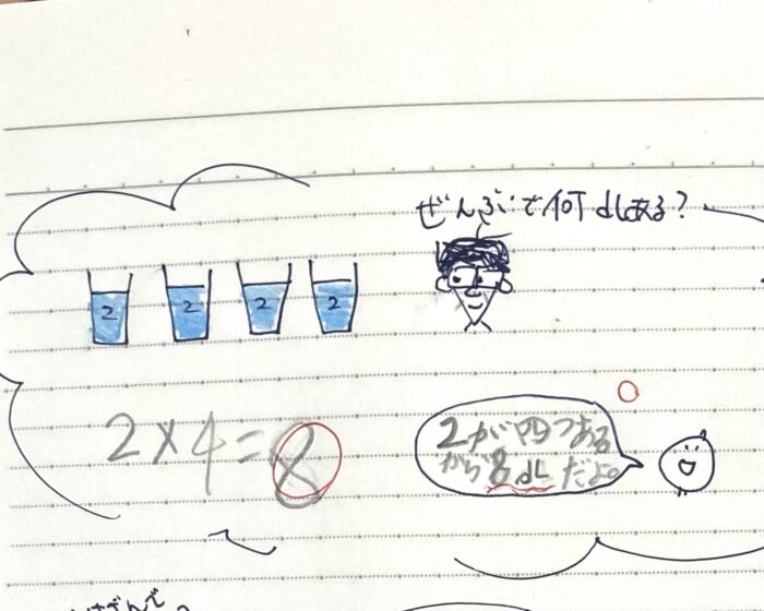 ぼくがそういうと、「2×4」と答え直してくれました。