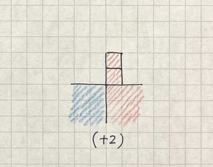 正負の世界で「プラスブロック」が2個多い状態です。
