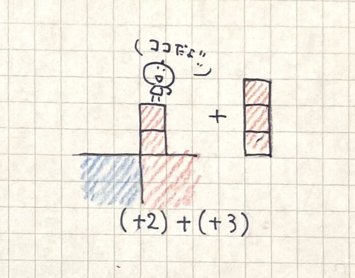 まず、この(+2)+(+3)をブロックで確認します。