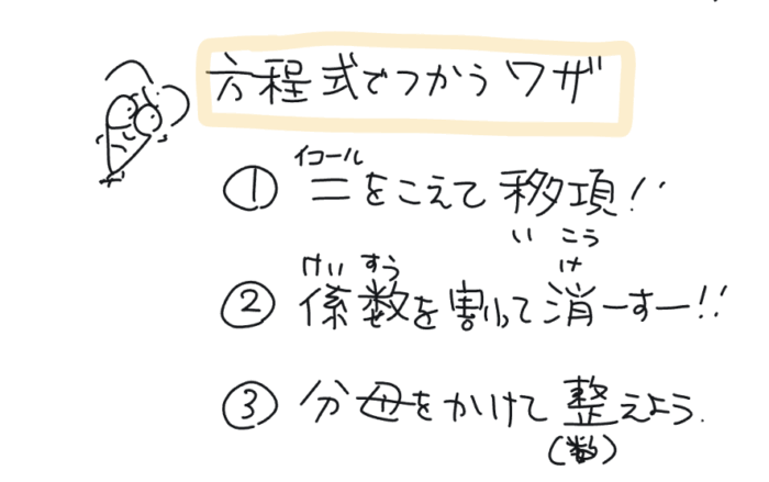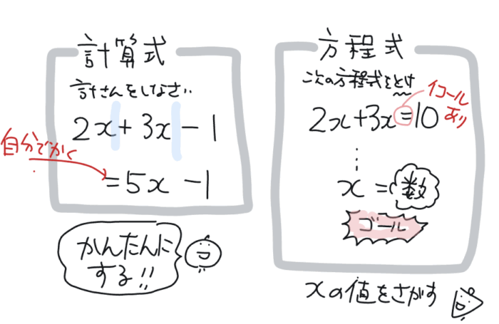 すでに学校で学んだということで、ぼくはまず最初に確認したのは「計算式」と「方程式」の違いでした。