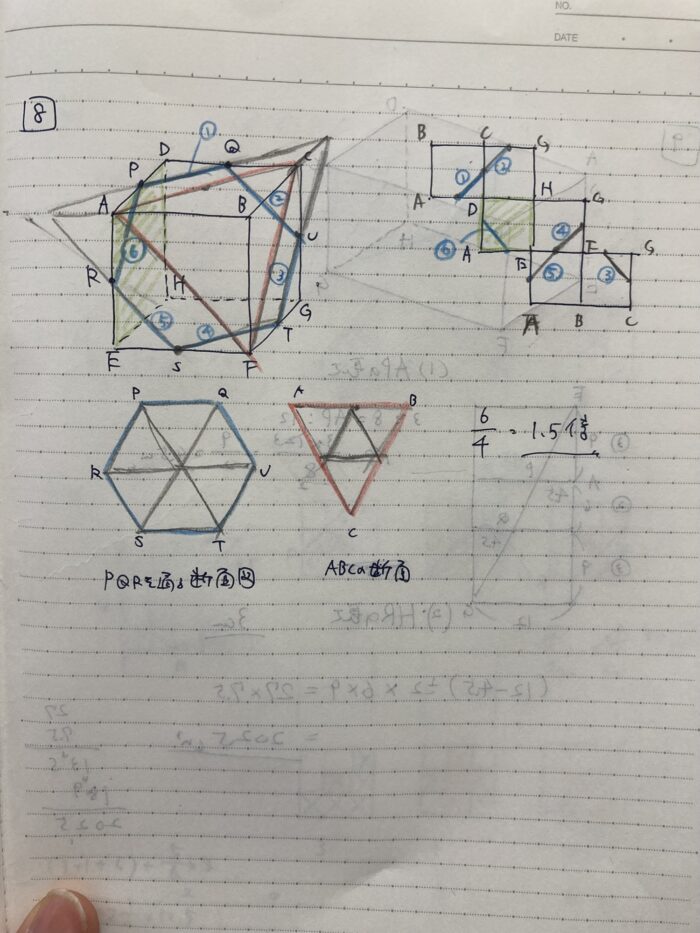 これまで、このような複雑な問題(立方体を切って正六角形になる)だと、切断のポイントを解説して、実際に練習してという流れで終わっていました。
