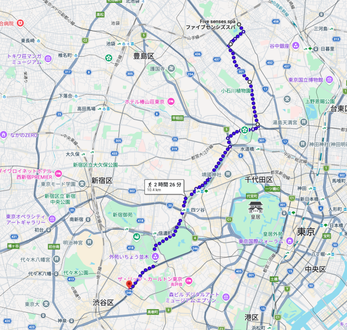 ルート計算でいけば2時間半らしい。そのとき、かなりゆっくりペースだったので3時間半ぐらいかかった。