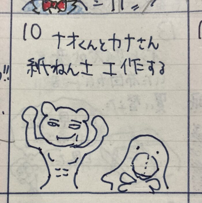 その日の枠に家族内であった出来事などを書きます。文章は1行か、2行ぐらい。イラストを入れるとOK.